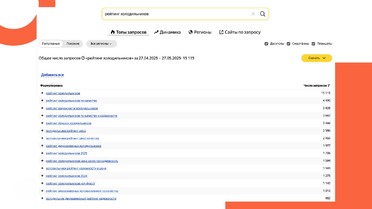 Проверив спрос, мы убедились, что создание страниц рейтингов точно имеет смысл.
