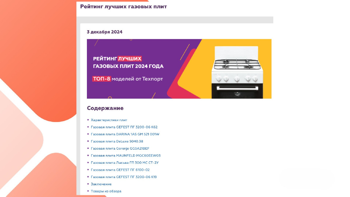 - создание страниц рейтингов бытовой техники, т.к. нужно было акцентировать внимание аудитории на этой категории.