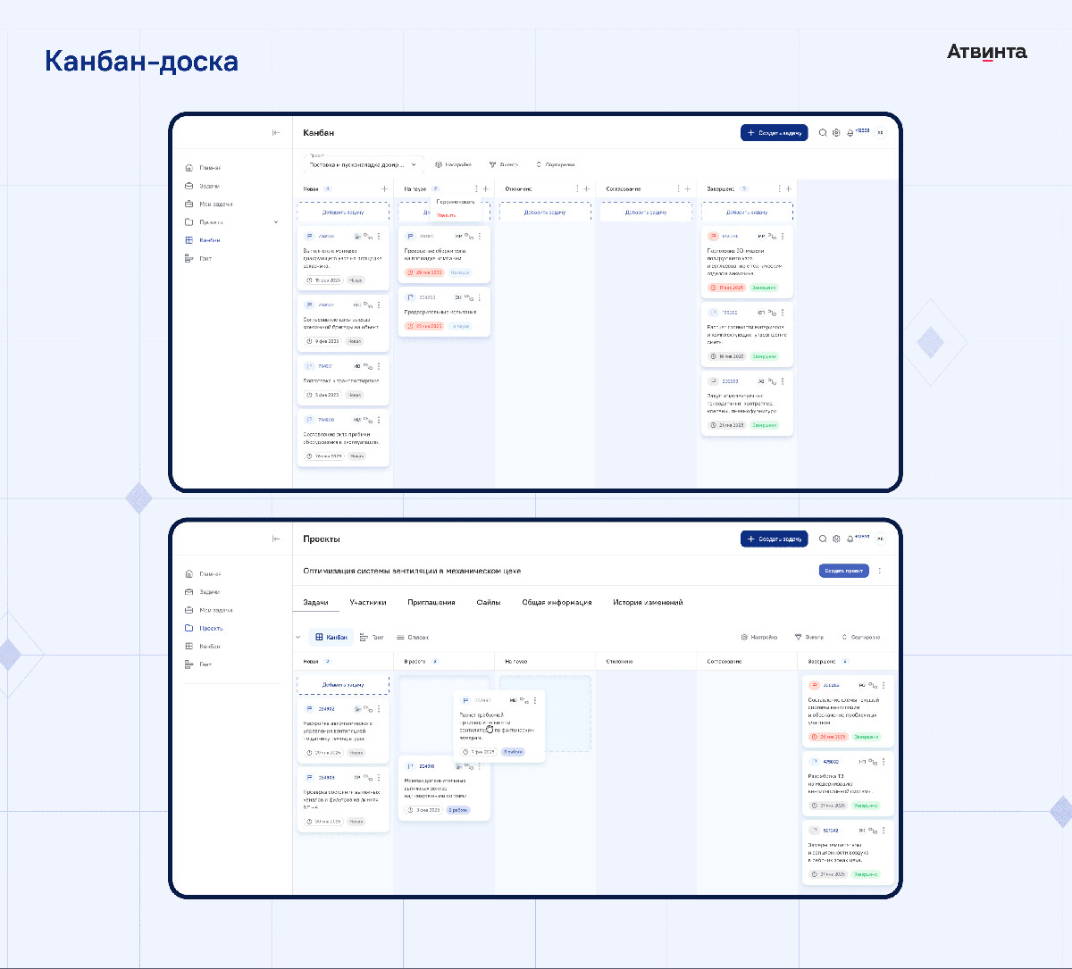 Визуальный контроль помогает руководителю следить за загрузкой команды и оперативно реагировать на проблемы. Канбан-доска адаптируется под специфику работы любого подразделения и позволяет гибко управлять проектами.