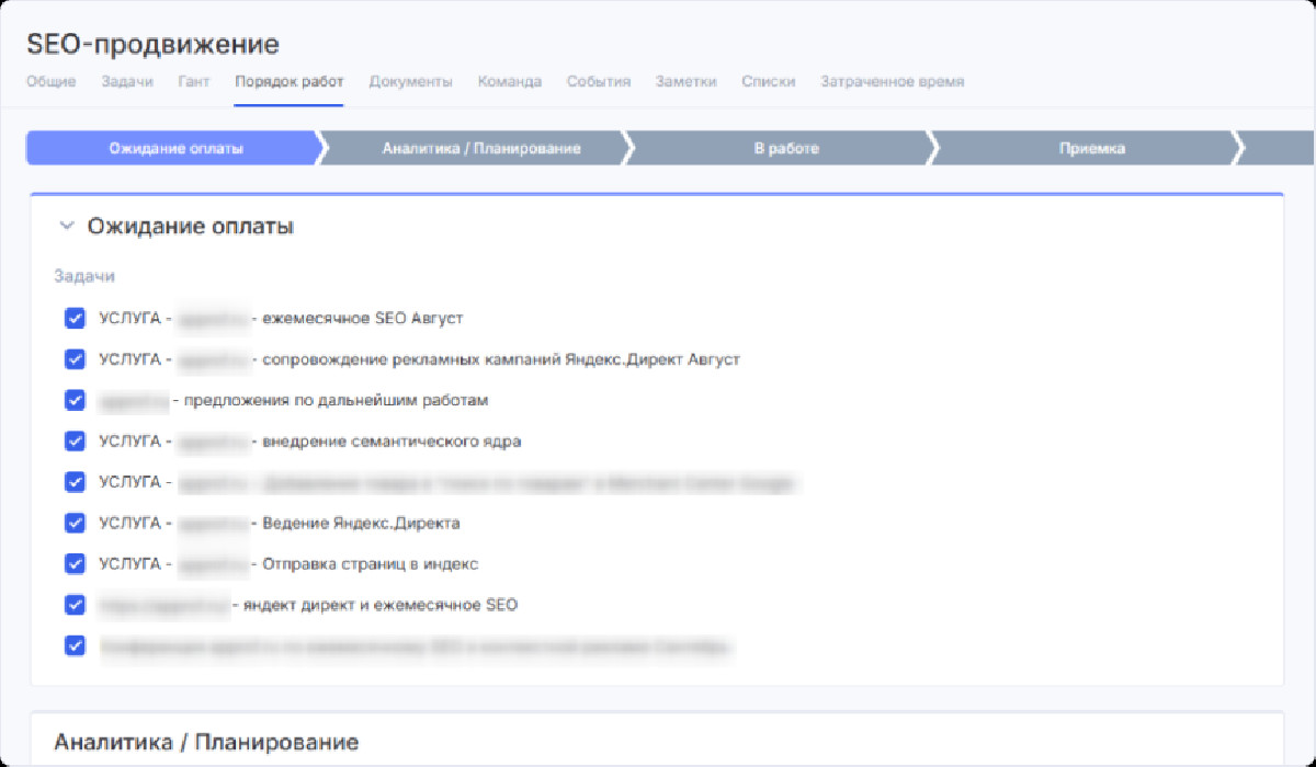 • Были созданы шаблоны проектов для SEO, контекстной рекламы и других направлений.