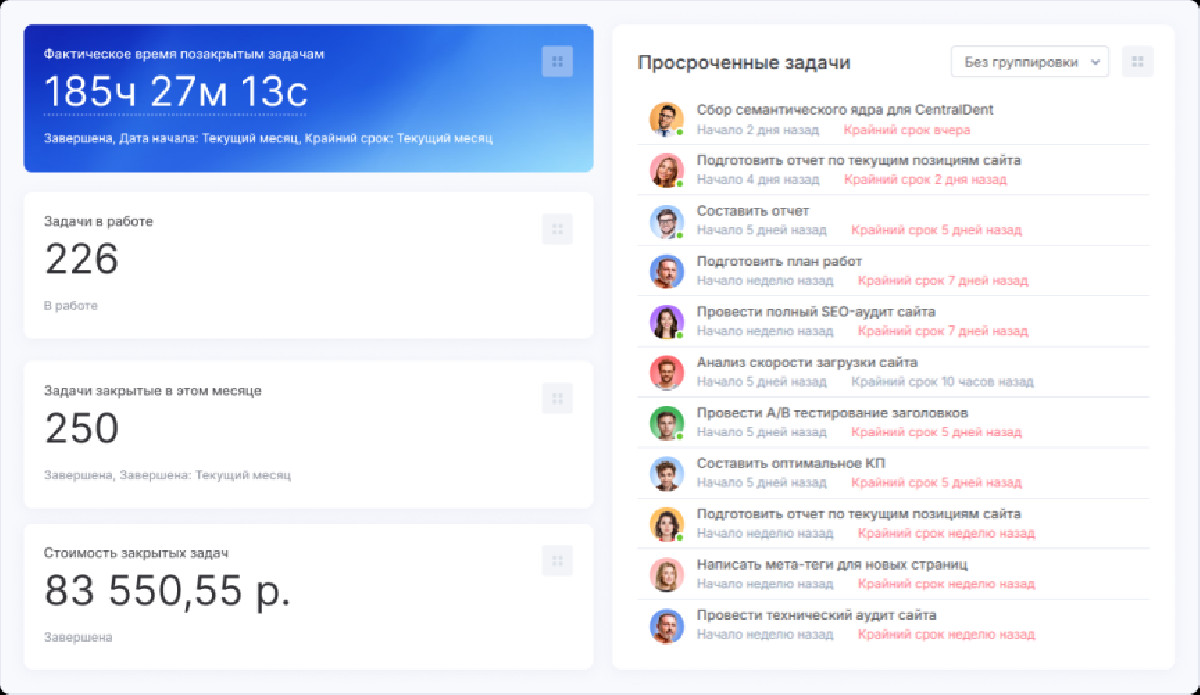 Отдел продвижения столкнулся с проблемами в организации работы: отсутствие четкой структуры, рутинные задачи, медленные старты проектов. Требовалась система, которая ускорит процессы, улучшит контроль и повысит эффективность работы.