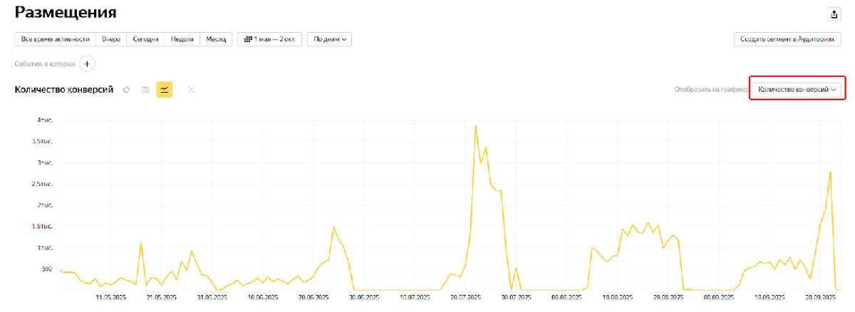 На старте мы запустили медийные кампании со стратегией «Максимум показов по минимальной цене», которые направлены на максимизацию показов за наименьшую стоимость за показ. Это закрывало основную охватную задачу канала, и мы попадали в KPI клиента, которые выражались в объеме показов и заданном уровне CPM. Но цена за post-click целевое действие в рамках данной стратегии была очень высокой и превышала средние значения из других каналов более чем в 10 раз. Очевидно, что сравнивать 2 абсолютно разных по типу, смыслу и способу закупки инструмента нельзя, но мы решили попробовать оптимизировать цену за конверсию и в медийных кампаниях.