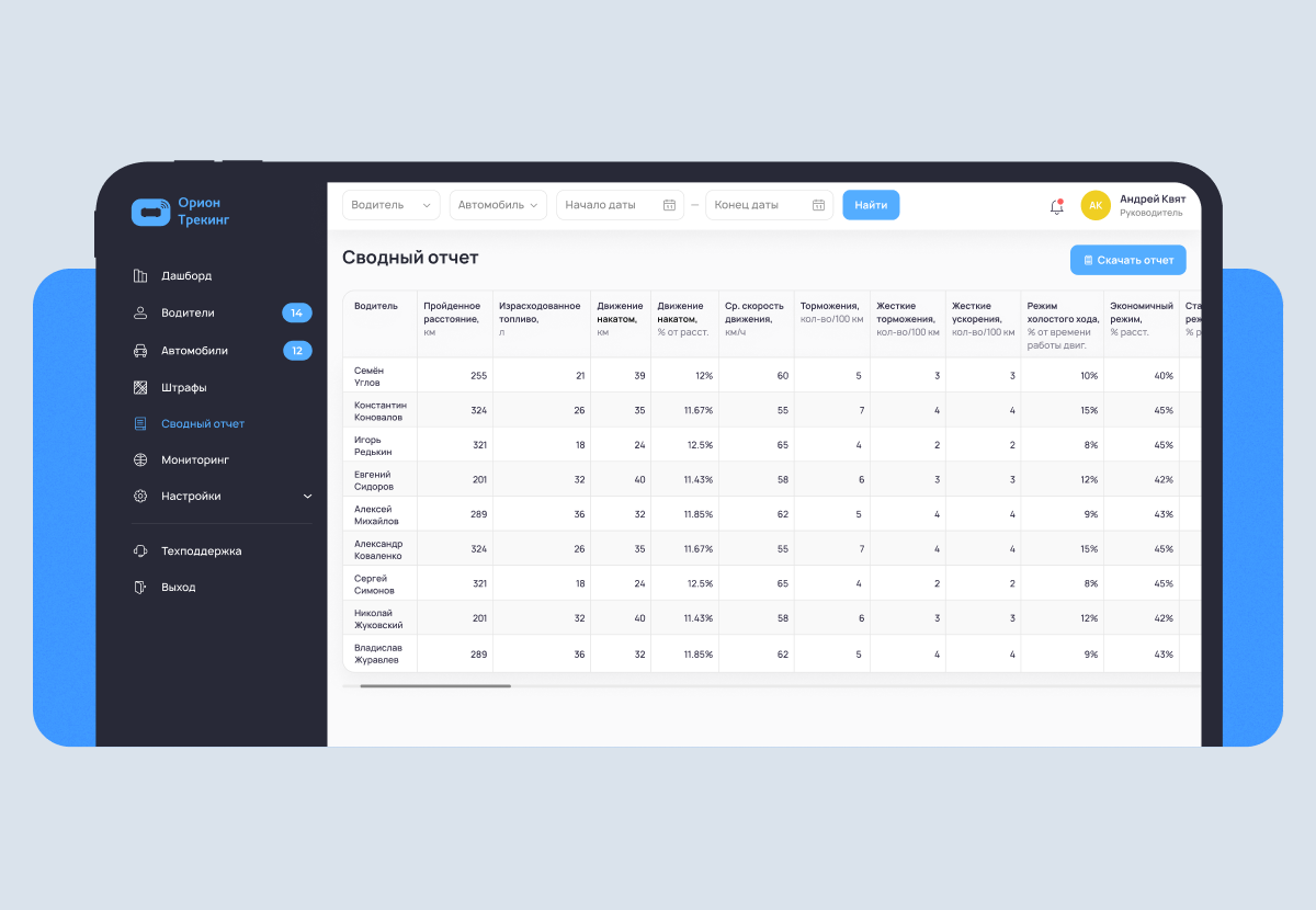 Сервис экономичной эксплуатации транспорта «Орион Трекинг»