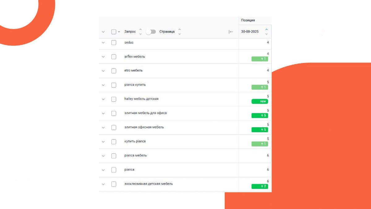После внедрения сформированных нами SEO-рекомендаций небрендовый органический трафик в Google начал расти. К августу 2025 года он увеличился на 125%, а видимость по запросам прибавила 157%. Это доказывает, что именно структурные и контентные изменения отразились в алгоритмах Google, что хорошо заметно на графиках: растет как трафик, так и позиции по целевым ключам.