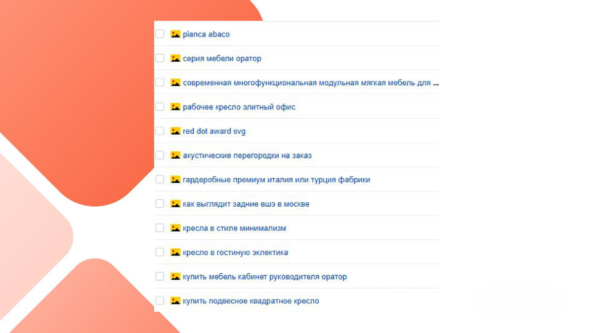В ходе SEO-мероприятий мы прорабатывали alt и title для изображений. Приведем лишь некоторые из запросов, по которым на сайт перешли из Яндекс Картинок.