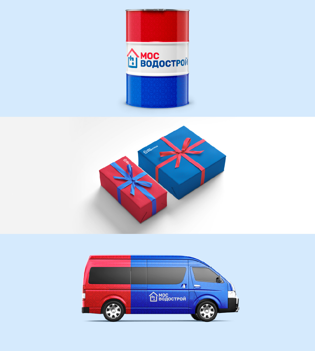 Компания «Мосводострой» — крупный игрок на рынке инженерных систем. Логотип компании активно использовался в городской среде: на униформе сотрудников, бортах спецтехники, оборудовании и в рекламных материалах.