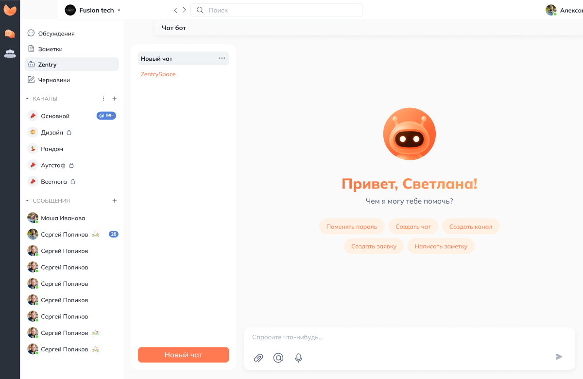 ZentrySpace — это пространство, в котором сотрудники, процессы и коммуникации объединяются в единую, управляемую экосистему, уникальное комбо из 3 модулей: HRM-системы, корпоративного мессенджера и ИИ-помощника. Это не просто интеграция, а единый продукт, где коммуникации и HR-процессы живут в одной логике, под одной архитектурой и базой данных.