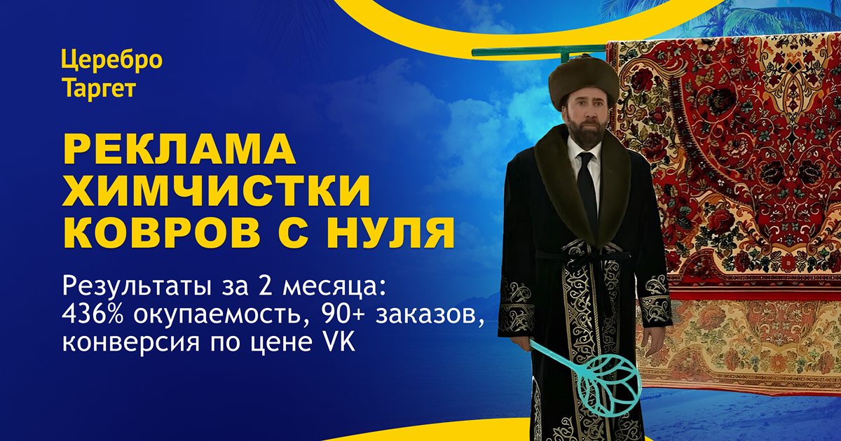 Реклама химчистки ковров с нуля в Директе: окупаемость 436% за 2 месяца