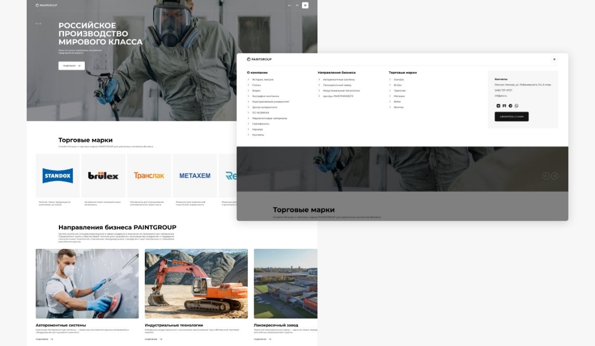 Мы проанализировали большое количество сайтов в данной отрасли, в том числе зарубежных. Изучили их структуру, основные паттерны и разработали свою концепцию, основанную на прозрачной подаче контента, чтобы рассказать о полном цикле производства лакокрасочных покрытий, от разработки формул до внедрения технологий в работу предприятий.