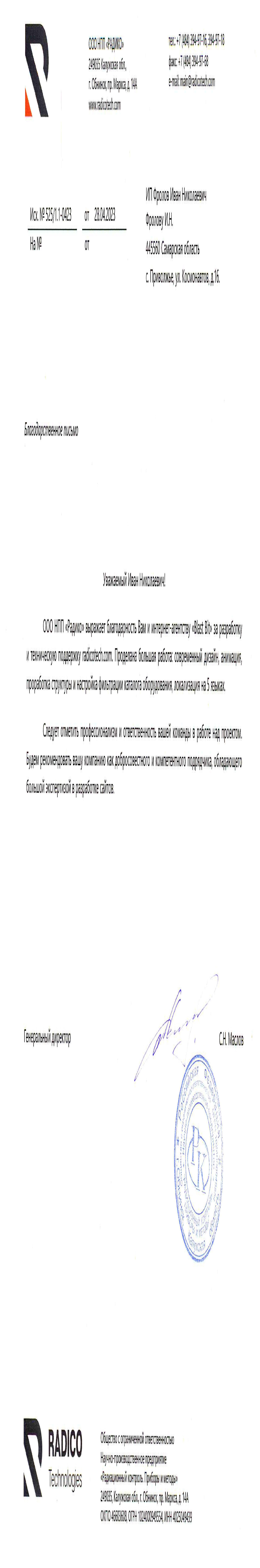 Мы ценим сотрудничество со всеми нашими клиентами и с гордостью публикуем их отзывы о нашей работе.