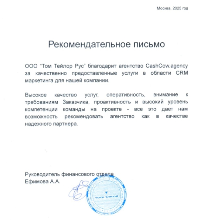 CashCow.agency — омниканальное агентство CRM-маркетинга. Управляем лояльностью и поведением ваших клиентов через все доступные каналы связи. Наша задача — превратить разовые покупки в долгосрочные отношения и предсказуемый рост дохода с одного клиента.