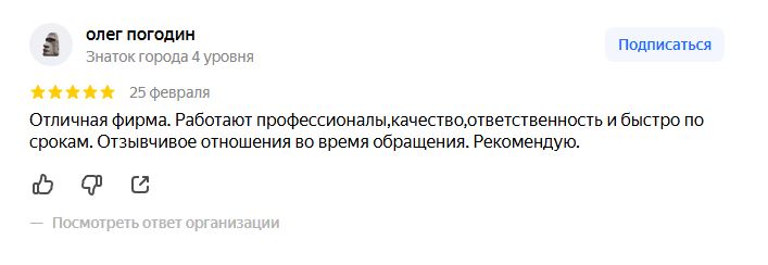 Отличная фирма. Работают профессионалы, качество, ответственность и быстро по срокам. Отзывчивое отношение во время обращения. Рекомендую.