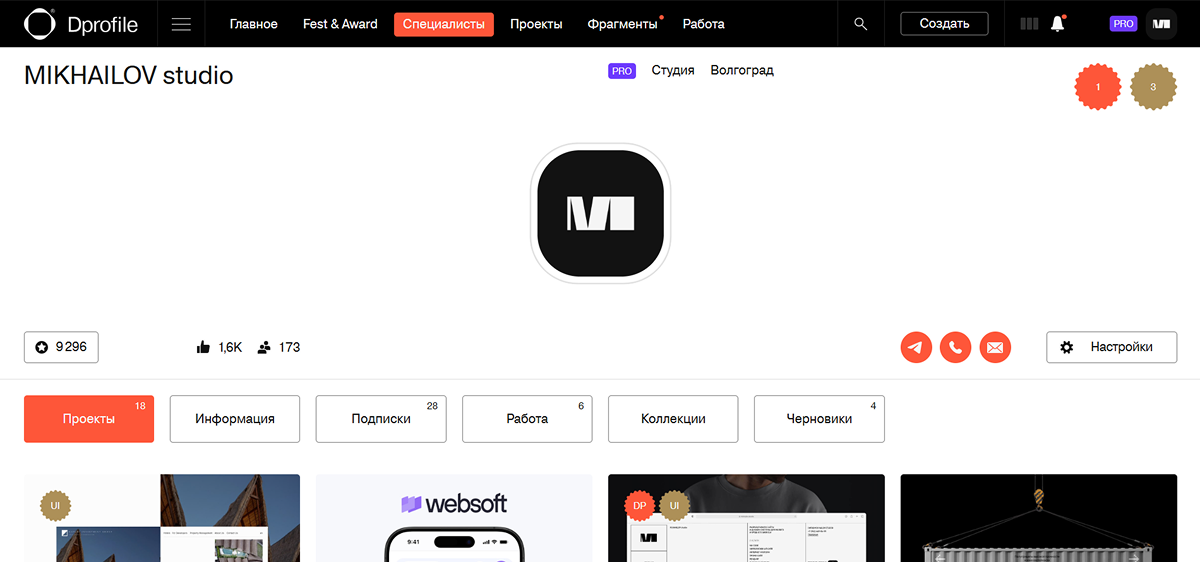 — Попали в «Лучшее» на Dprofile получили награду за UI сайта студии: https://dprofile.ru/case/