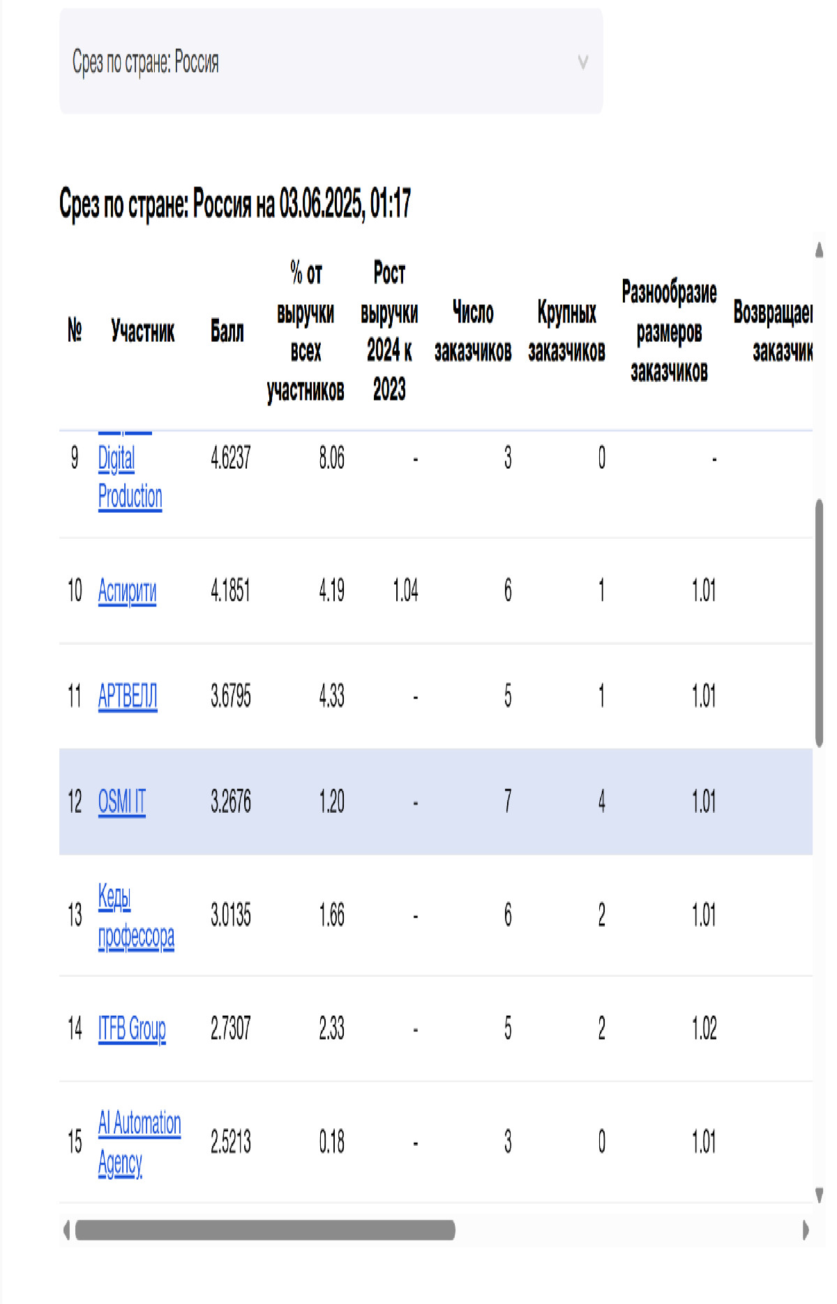 OSMI IT — аккредитованная IT-компания и разработчик решений на базе искусственного интеллекта, включая собственную платформу OSMI AI для создания enterprise AI-агентов. Компания признана рынком: входит в топ-6 разработчиков AI-решений Москвы и топ-15 AI-разработчиков России по версии «Рейтинга Рунета». Экспертиза подтверждена участием в ключевых отраслевых сообществах (РУССОФТ и АЛРИИ), а также профессиональными наградами: бронза Tagline Awards 2025 и призовые места Workspace Digital Awards.