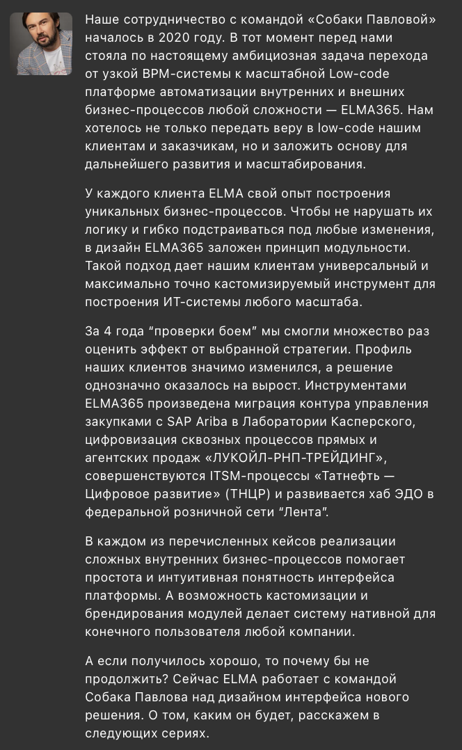 Наши приоритеты в работе – интерфейсы нужные и удобные для пользователя, выгодные бизнесу, бережные к ресурсам разработки. Мы рады, что результаты совместной работы с командами заказчиков и внедренные решения получают положительные отклики и среди заказчиков, и среди пользователей продуктов.