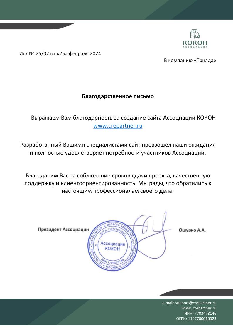 Разработанный Вашими специалистами сайт превзошел наши ожидания и полностью удовлетворяет потребности участников Ассоциации. Благодарим Вас за соблюдение сроков сдачи проекта, качественную поддержку и клиентоориентированность. Мы рады, что обратились к настоящим профессионалам своего дела!