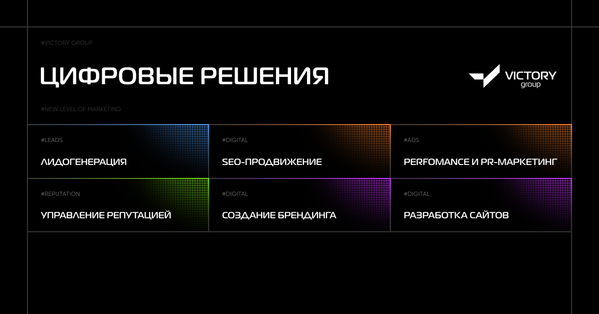 VICTORY group – самое быстрорастущее агентство России, предоставляющее полный спектр digital-услуг: лидогенерация, управление репутацией, performance и PR-маркетинг, SEO-продвижение, разработка сайтов и создание брендинга.