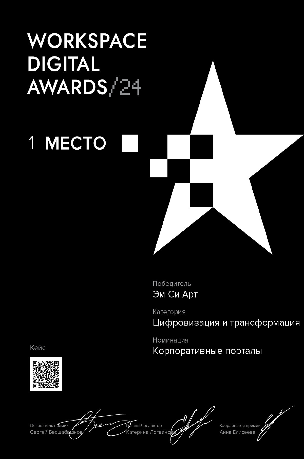 1 место на премии Workspace Digital Awards — 2024